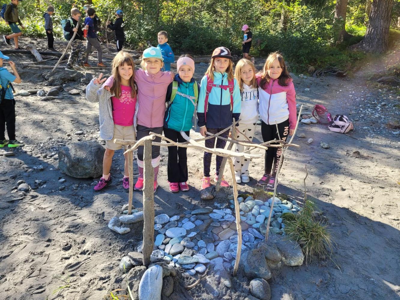 Die Kinder schlenderten gemeinsam am Radweg entlang und genossen die frische Herbstluft. Am Innufer und im Wald gab es viel zu entdecken: Es wurde gespielt, gelacht und mit Begeisterung Mandalas aus Naturmaterialien gestaltet. Außerdem sammelten die Kinder verschiedene Schätze aus der Natur, die später für das Krippenprojekt verwendet werden.